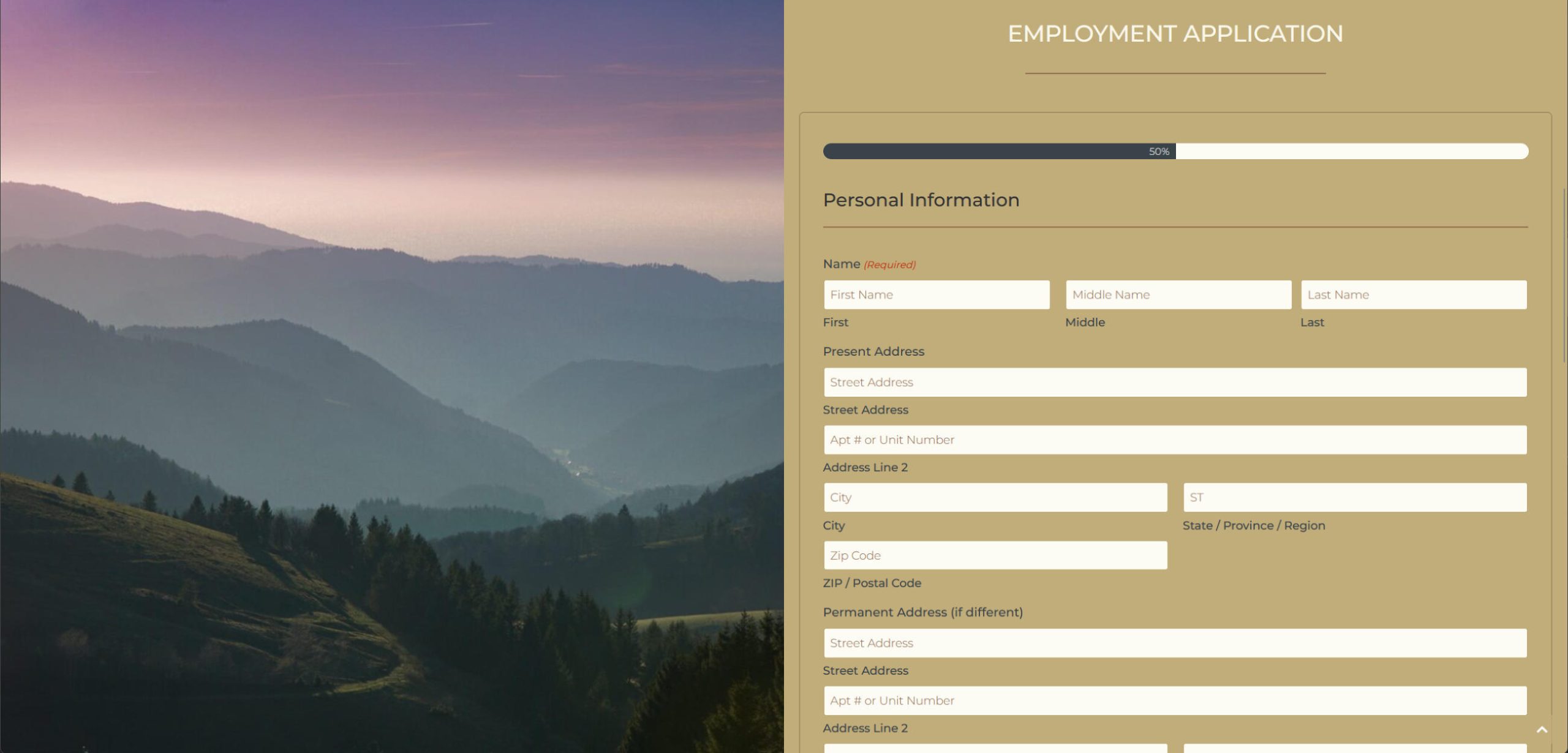 Advanced forms for employment application and contact