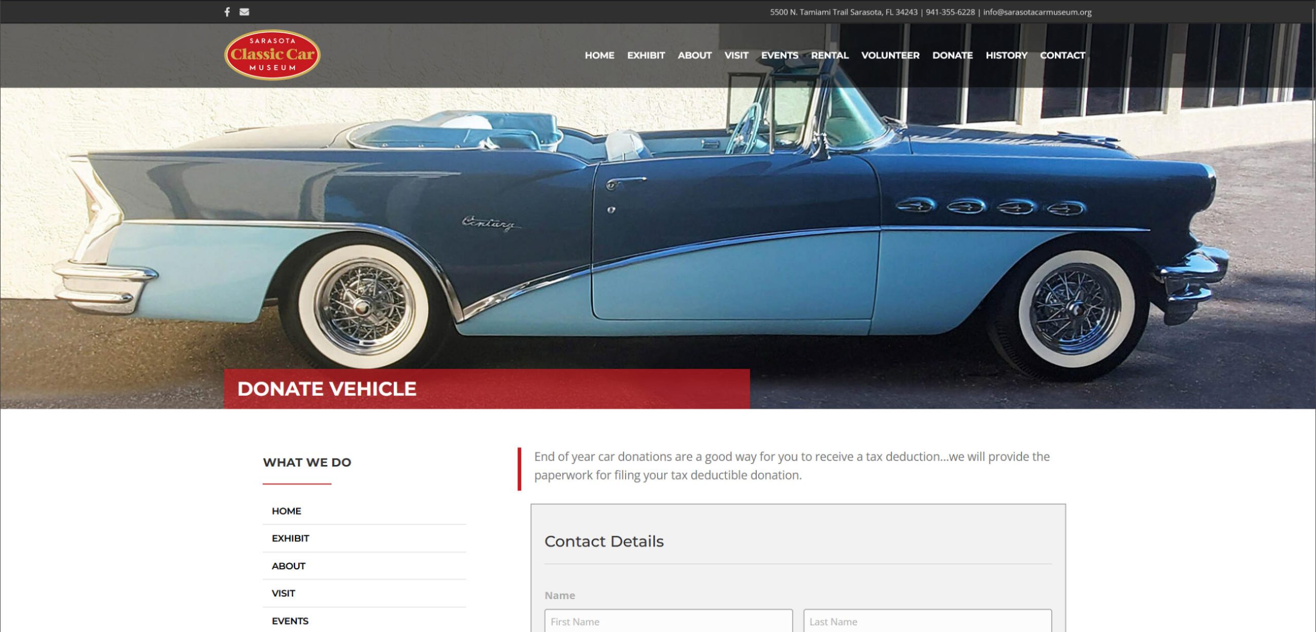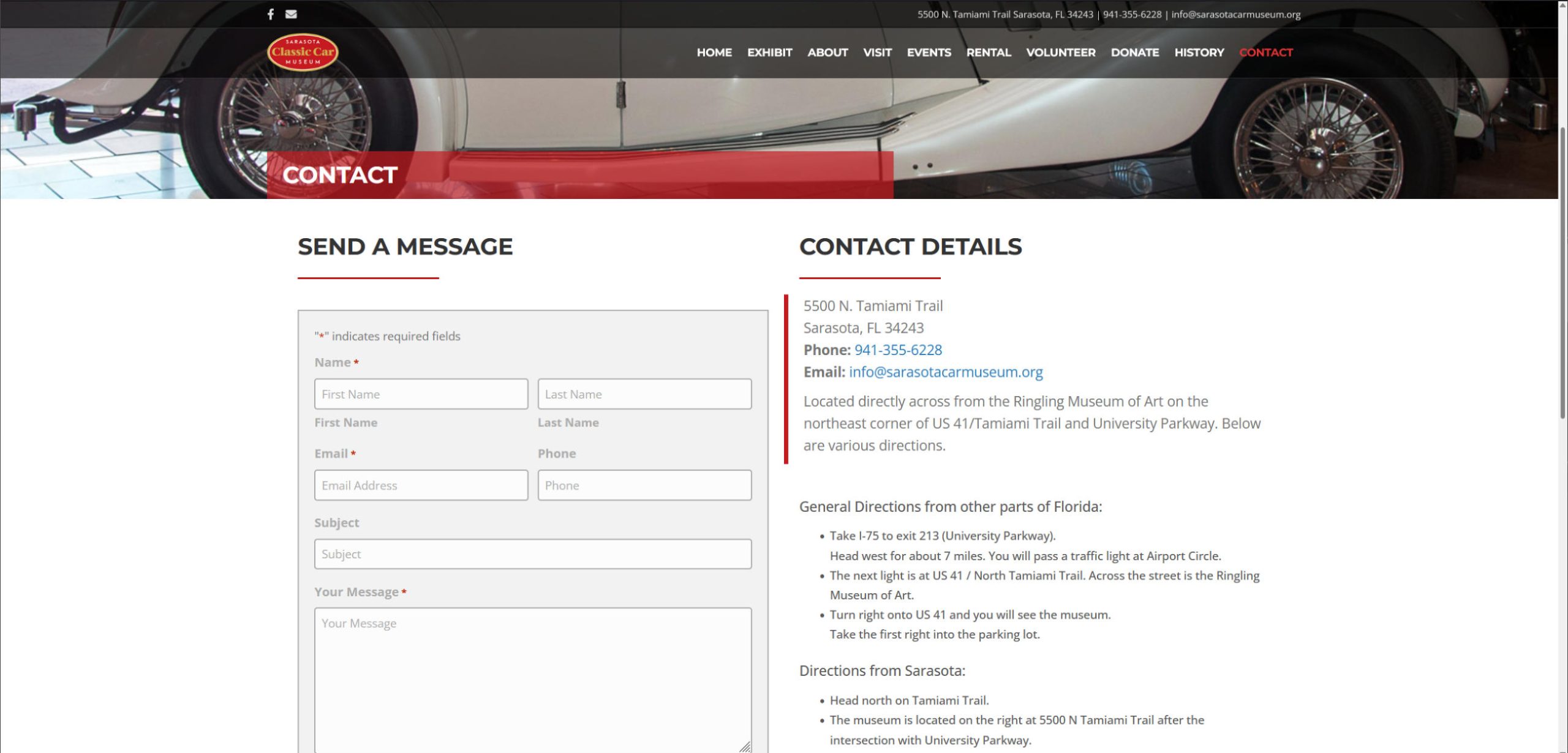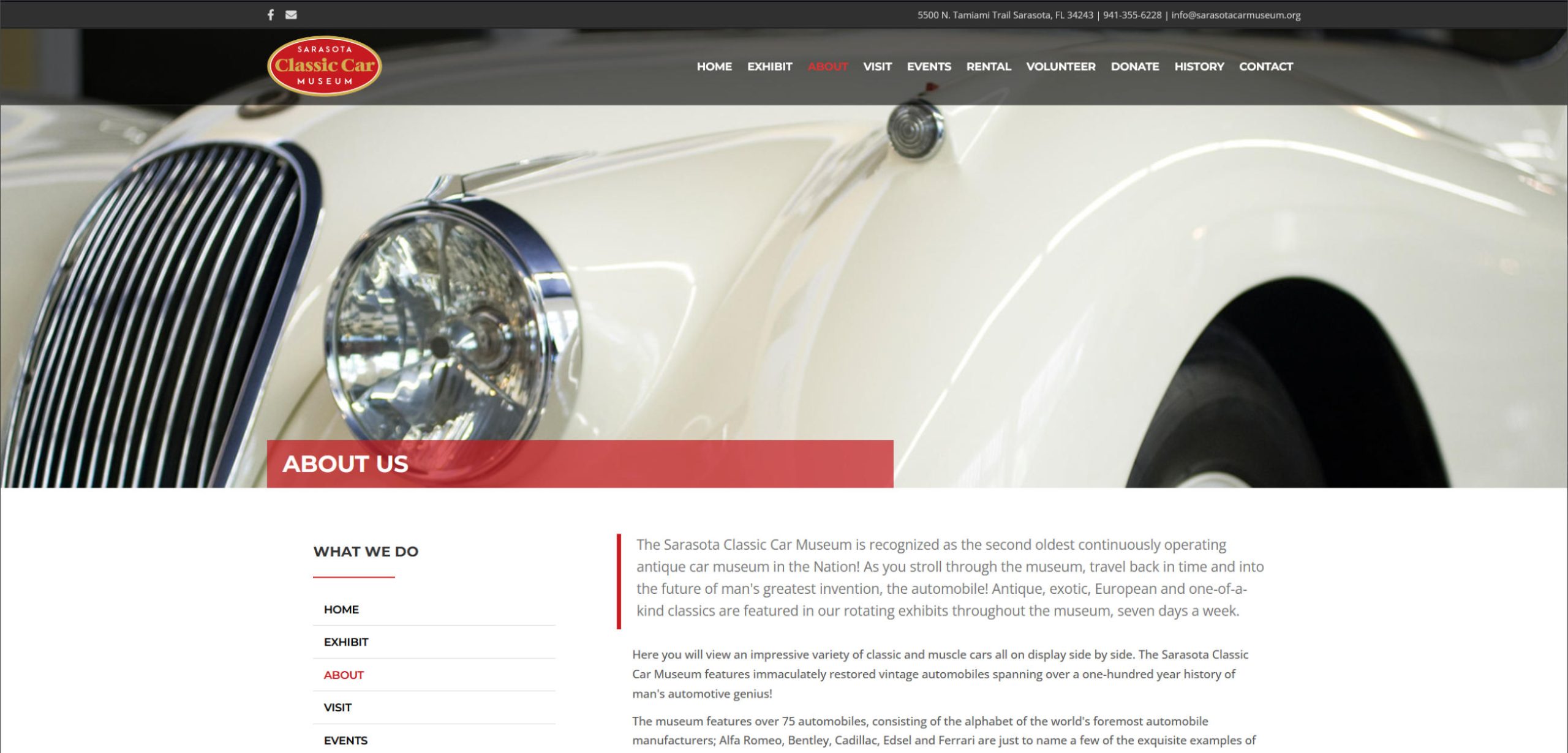 Custom WordPress site for The Sarasota Classic Car Museum.